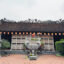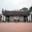 The three-door gate has three compartments and is made into two parts. The upper floor has two layers of roof covered with tiles, surrounded by a wooden floor, the railings are made into two rows of bars. This floor is used as a bell tower, the three lower rooms have a system of ironwood doors.