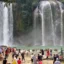 From a panoramic angle from afar, the waterfall pours down creating a white foam area, giving us a feeling of wildness but extremely magnificent. In the middle of the fall is a rock landing covered by trees that divides the stream into three and creates a thin mist that cool down the temperature.