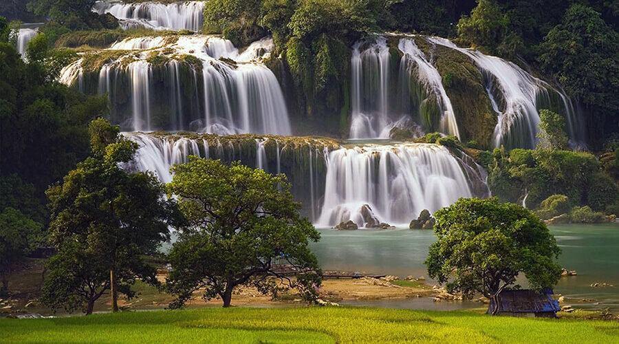 Ban Gioc fall is considered a place with majestic scenery, like a fairyland in the Quay Son River, Cao Bang. This is known as the most beautiful fall in Vietnam with successive fall levels, stretching hundreds of meters.