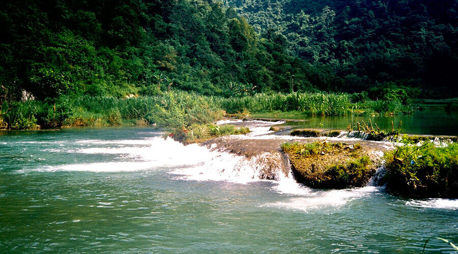 Ban Gio fall is located in Dam Thuy Commune, Trung Khanh District, Cao Bang Province, on the flow of Quay Son River, the eastern half of the right fall belongs to China’s sovereignty in Daxin County, Guangxi. Quay Son River originates from China, flows into Vietnam at landmark 784 in Po Peo area, Ngoc Khe Commune, Trung Khanh District. After pouring down to the foot of the waterfall, the river turns completely into Chinese territory.