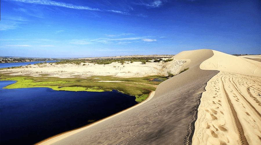 Bau Trang is a unique tourist destination in Mui Ne, Lam Dong Province. The Bau Trang tourist destination, with its smooth white sand dunes that shift shape with the seasons and a clear blue freshwater lake, captivates visitors.