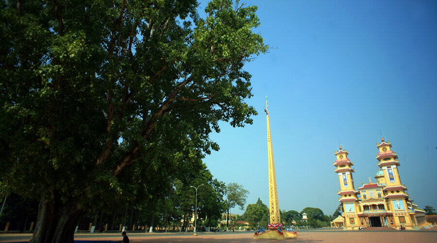 Cao Dai Holy See is located in Long Thanh Bac commune, Hoa Thanh district, about 4km southeast of Tay Ninh city center and about 100km northwest of Ho Chi Minh City. This place is known as a typical work of Cao Dai religion in Tay Ninh. According to our research about Tay Ninh Holy See, the special highlight of this place’s architecture was built entirely of bamboo-reinforced cement. The local also said that the Tay Ninh Holy See was built on the sacred land – a place considered a holy place for Saints, Immortals, Buddhas as well as God who chose it as a Holy See to come and dwell.