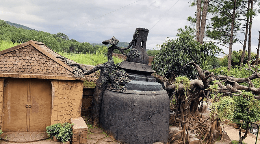Next are modern landmarks in Da Lat, including the Da Lat station, the Pasteur Institute, the Rooster Church, the airport, and the Valley of Love. Among these clay sculptures, the most special work is a house made entirely of clay, covering approximately 90 square meters.
