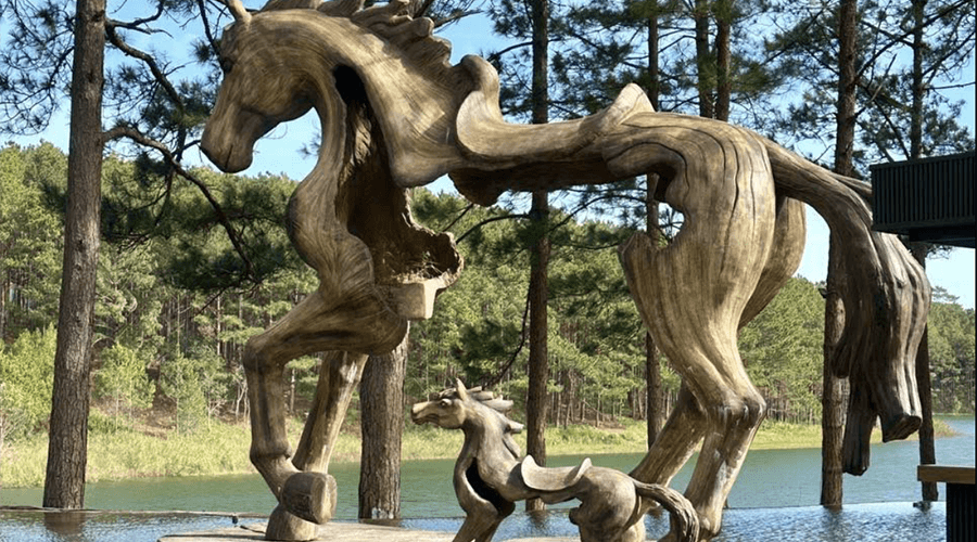 The clay architectural and landscape models of Da Lat stand out amidst the lush green pine forest beside Tuyen Lam Lake. The first impression of this project is the open-air tunnel, with numerous sculptures lining its walls. This project was created to recreate Da Lat from its early days to its modern development, showcasing its unique architecture and culture. Following the tunnel, visitors can see the history of Da Lat’s formation, including its characteristic stilt houses and scenes of daily life among ethnic minorities.