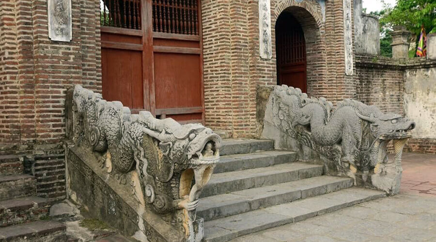 The temple still retains a number of relics such as a bronze statue of An Duong Vuong, horses statues, items made of bronze, porcelain, wood, fabric… In front of the gate are two stone dragons with curving bodies. The beard is carved extremely delicately, bearing the architectural style of the Le Dynasty.
