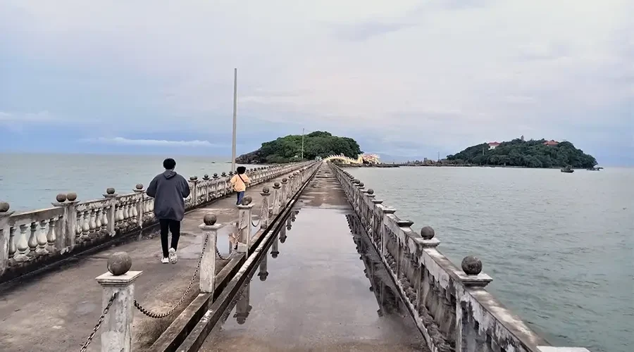 Ong Ngo islet, where you set foot right after crossing the 400m bridge over the sea connecting the mainland to the island, has the beauty of wild primeval forest, towering mountains, and a coastline surrounded by foaming waves.