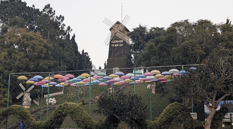 Formerly known as Bich Cau Flower Garden, the site was renamed Dalat City Flower Park in 1986 and now covers nearly 15 hectares, featuring a distinctive, eye-catching design. The entrance to the garden is truly impressive, with arched flower arrangements made from hundreds of colorful flower pots.