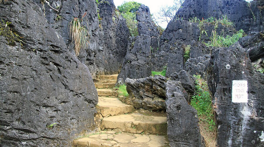 Along with that, these stone walls make many visitors amazed, surprised or even stunned by the magic. The rocks hanging suspended, angular and full of thorns. Added to the green of the mountains and forests, creating a fascinating and charming image.