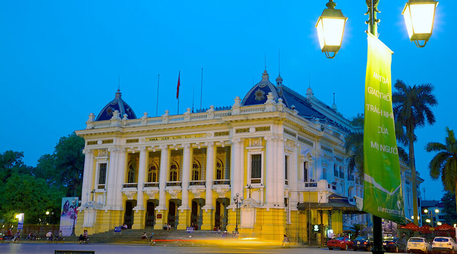 The Opera House is located at 1 Trang Thi Street, Trang Thi Ward, Hoan Kiem District, right at the August Revolution Square.