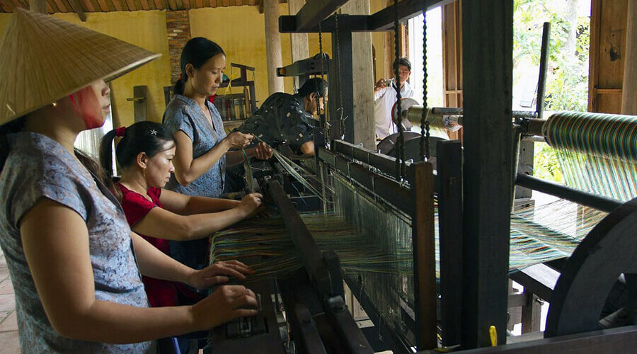 - Short tour with 45 minutes. ticket price 100,000 VND/person, with the guidance of a tour guide. Because the time is quite short, you can only learn about the general processes of silk weaving, and you will not be able to experience the weaving process yourself.