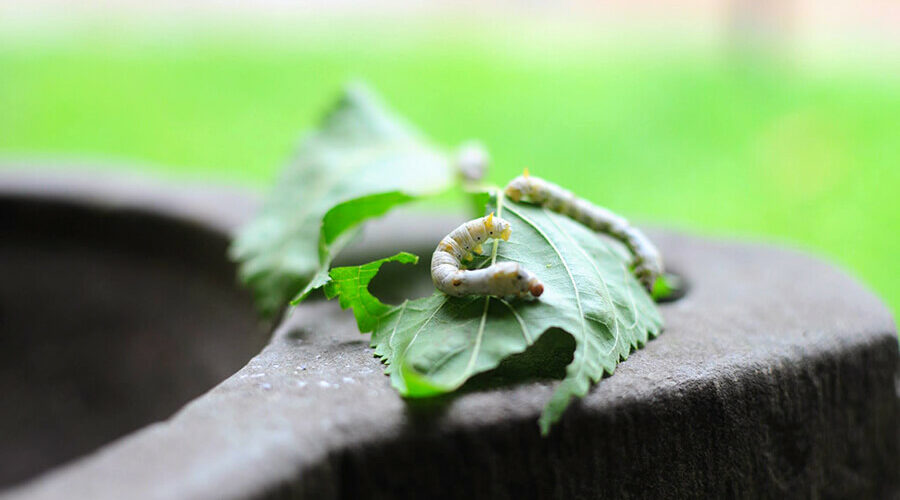 White silkworms produce white silk threads, from these white silk threads people can steam dye them into many colors. Yellow silkworms produce golden silk threads and if dyed, they can only be dyed black. That’s why white silk is always more expensive than yellow silk. White silkworms are also larger than yellow silkworms. To distinguish silkworms, people look at their bodies. White silkworms have white bodies and yellow silkworms have white bodies but yellow legs.