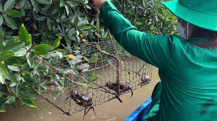 If you want, visitors can also transform into fishermen rowing boats through the mangrove forests, immersing themselves in the cool green forest. This place has favorable conditions to develop experiential activities such as catching shrimp, finding snails stranded in the water or wading through the forest to catch crabs and fish when the tide is low to feel the richness and diversity of the products of this land.