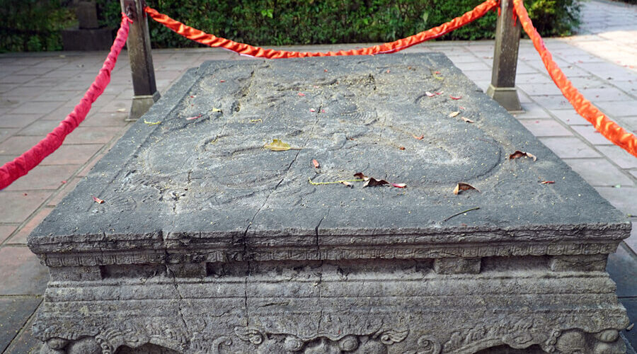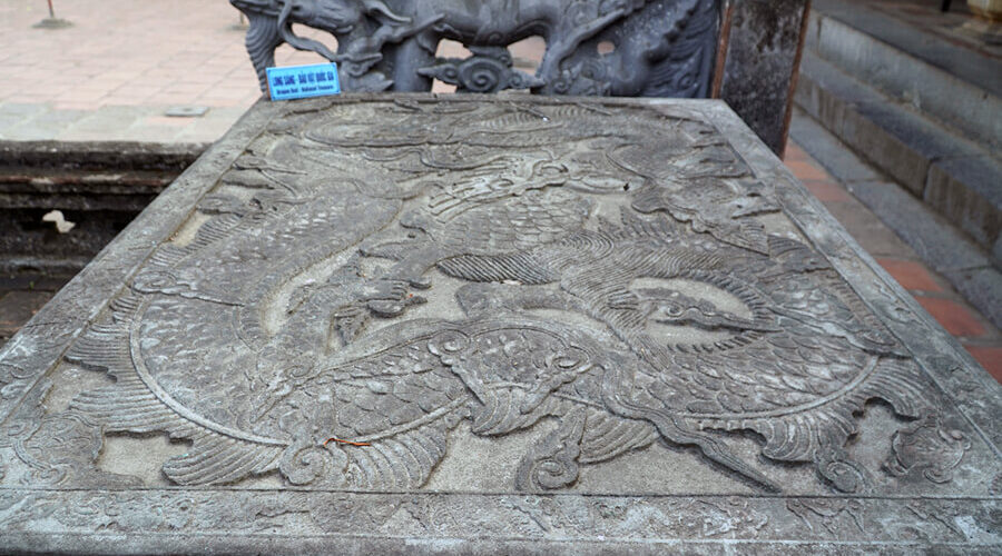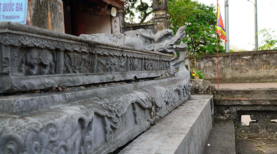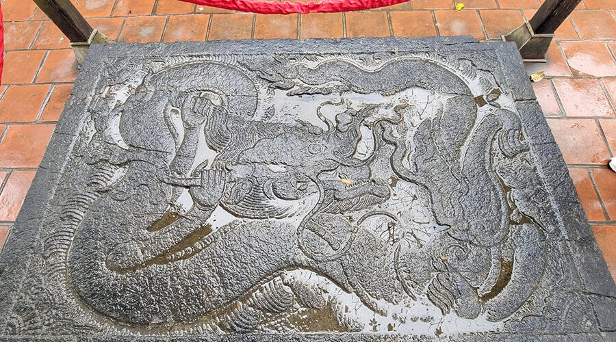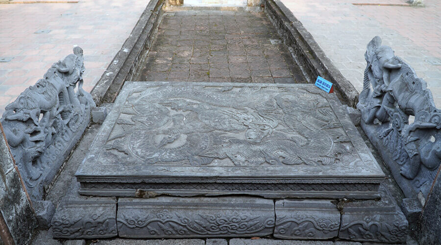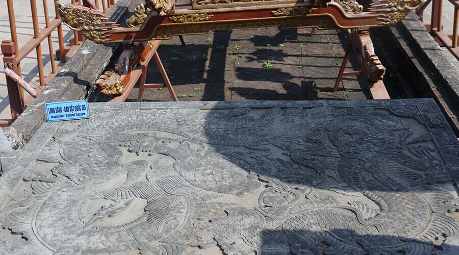 In front of the central room of the worship hall right on the dragon yard is a “dragon bed” made from a single block of green stone combined with extremely delicate carvings with unique and valuable patterns. This is considered a valuable gift, at the same time showing talent and artistic talent of Vietnamese during this period.