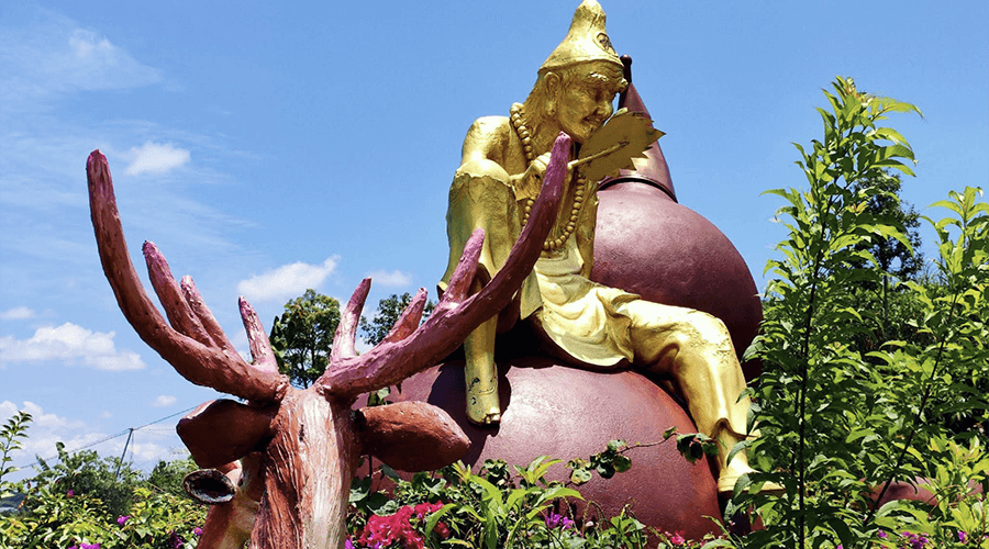 From afar, visitors can clearly see the entire landscape, amidst the vast expanse of mountains and forests, a gigantic, towering, and exquisitely carved statue.