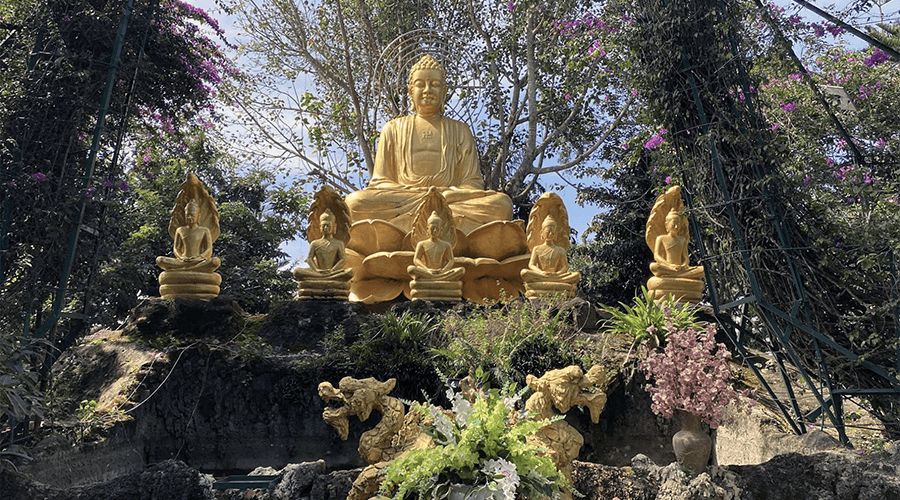 In 1993, the pagoda was built on an empty plot of land facing Elephant Waterfall. This is also the location of the Lumbini Garden, a gathering place for countless famous flowers of Da Lat.