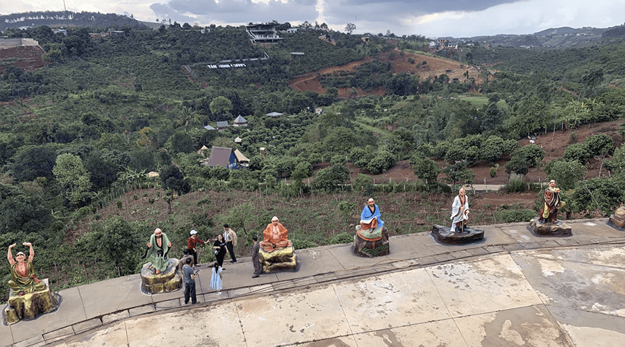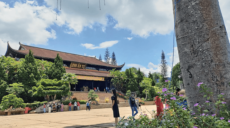 Located at an altitude of over 3000m above sea level, Linh An Pagoda is considered an ideal viewpoint, offering a stunning panoramic view of the majestic mountains and forests of Lam Dong province. Visiting this place, you will be immersed in a serene spiritual atmosphere amidst majestic nature.