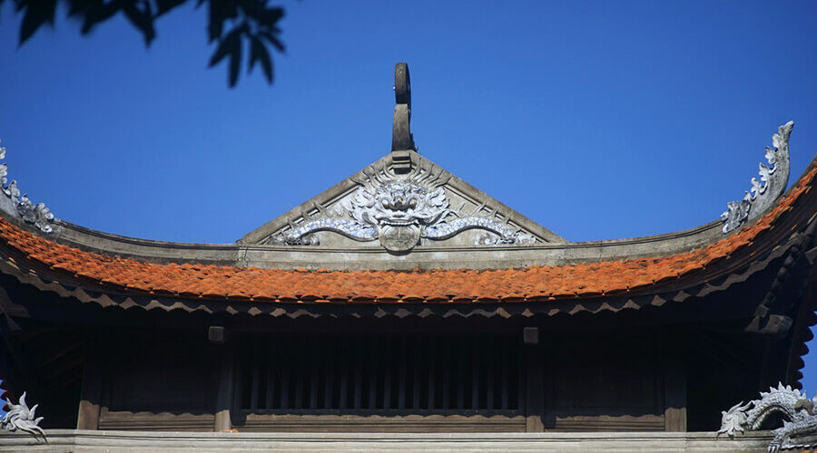 The main materials are mallet bricks, a popular type of brick of the Le Dynasty, and stone and arched door arches. From east to west it is 47.5m long, from south to north the middle section measures 13m, the wings on both sides measure 26.5m, 6m high.
