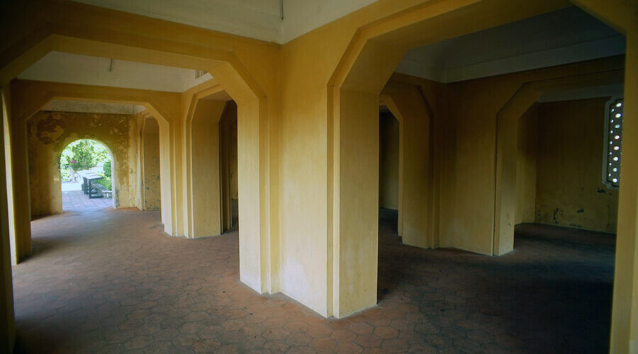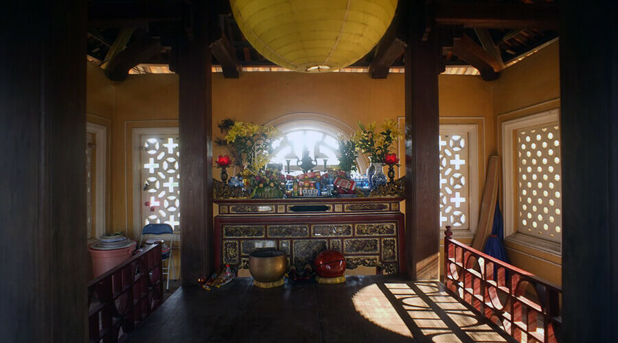 The stone sign engraved with the words “Doan Mon”, mounted above the main door is 1.5m long and 0.7m wide. On both sides there are small brick steps leading to the second floor. This floor has an area corresponding to the middle door. Because it was renovated as a working facility for the military, the old architecture cannot be researched.