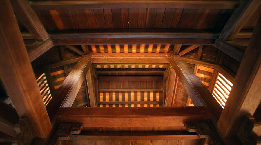 On the roof of the second floor, a small communal house with two floors and eight roofs was built. The roof is tiled, the two ends of the roof are covered with two dragons, the two gables are covered with tiger talismans; the 4 corners of the upper roof form a curved blade.