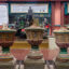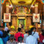 A striking feature of the temple’s architecture is the soaring, intricately carved domes, covered in a vibrant golden paint – a color symbolizing good fortune and prosperity in Eastern beliefs.
