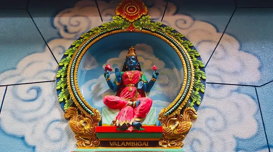 Entering the main hall, we felt as if we had entered a mythical world. The sacred space dedicated to the goddess Mariamman shines brightly, where architecture and belief intertwine in profound tranquility.