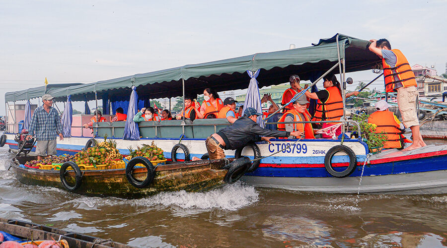For tourists, the most important experience when going to Long Xuyen floating market is to choose the right season. Buy seasonal fruits, which are both delicious and cheap, and ensure cleanliness. The end of the year is the season for grapefruit, the beginning of the year has sapodilla, the middle of the year is mango and durian, rambutan…