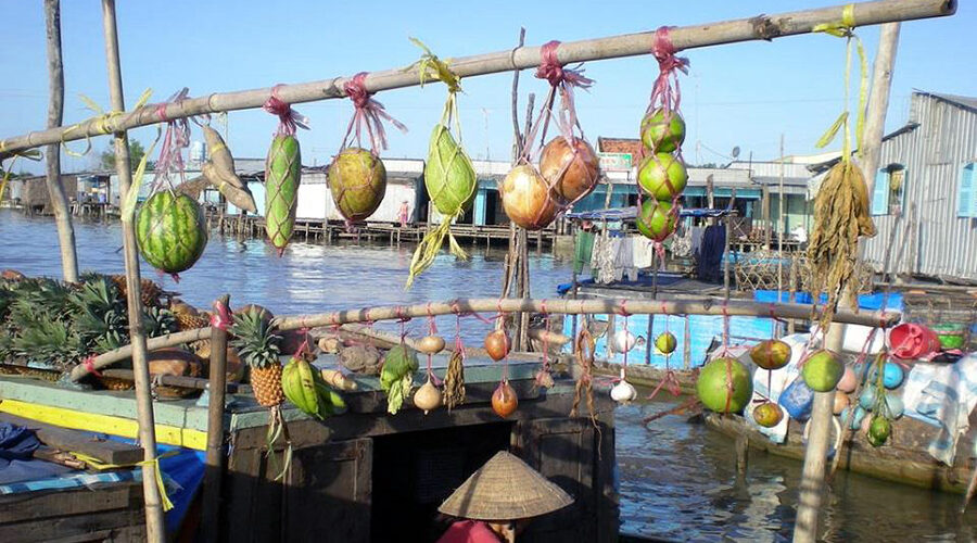 Hanging on the pole that Vietnamese who live in Western call ” cay beo” (beo tree) is the whole… Mekong Delta region. It is the full world of vegetables, tubers, and fruits. It is the daily necessities. It is the life of a merchant anchored to the water…