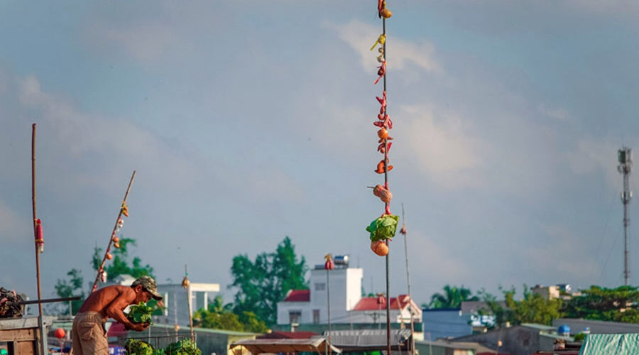 To “advertise” their products, traders use long poles, symbolically tied to the type of goods they want to sell, and then stick them at the bow of boats. Buyers can look at them and find what they want to buy. Westerners call them “beo” poles. Newcomers think that whatever is hung on a beo pole is what they sell. However, in reality, there are four different types of beo poles. Of course, hanging what is sold is the number one general principle. The second most common beo pole is hanging but not selling. Boats are not only a means of transportation and transporting goods for sale, but are also homes and places where merchant families live.