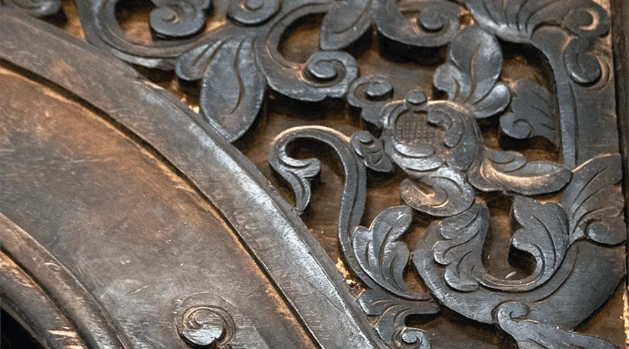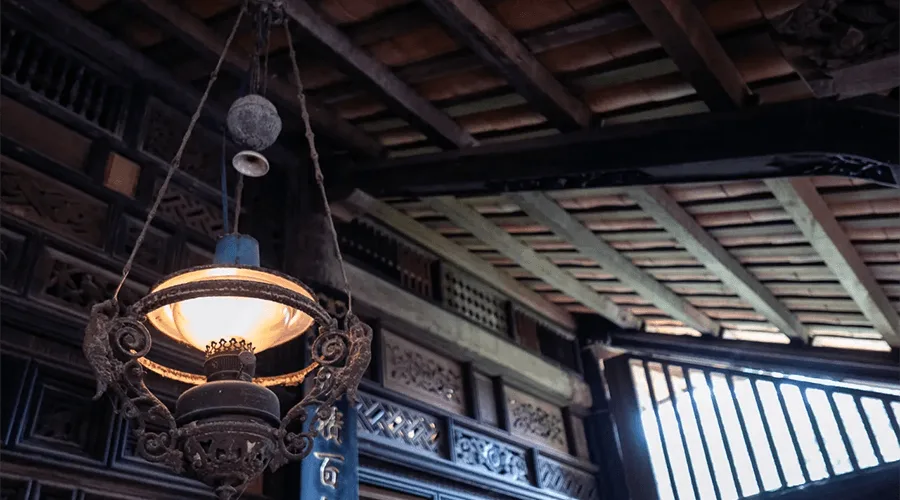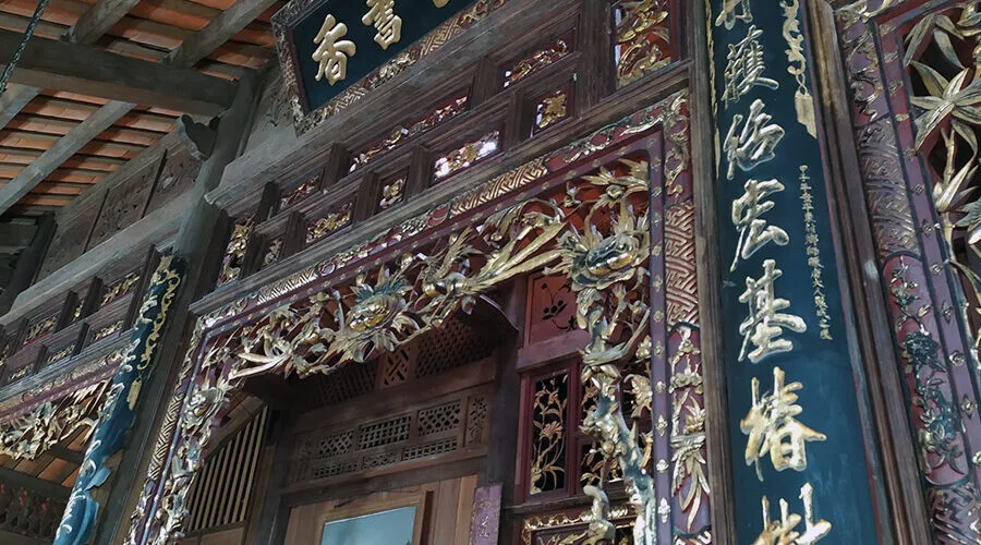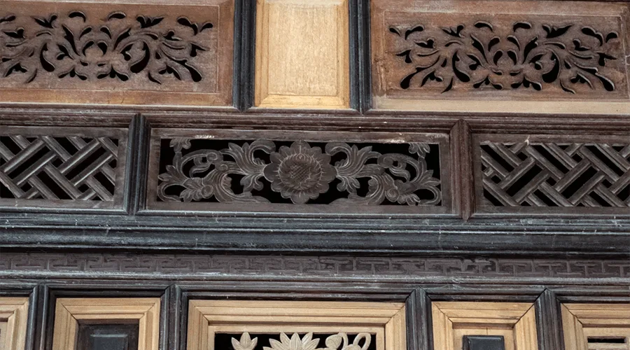 The interior and wall paintings are all gorgeously inlaid with mother-of-pearl. Connecting the main pillars of the house is a system of panels carved with harmoniously stylized plums, orchids, chrysanthemums, and bamboos, soft motifs, and gilded, demonstrates the level of craftsmanship and art appreciation of the ancients.