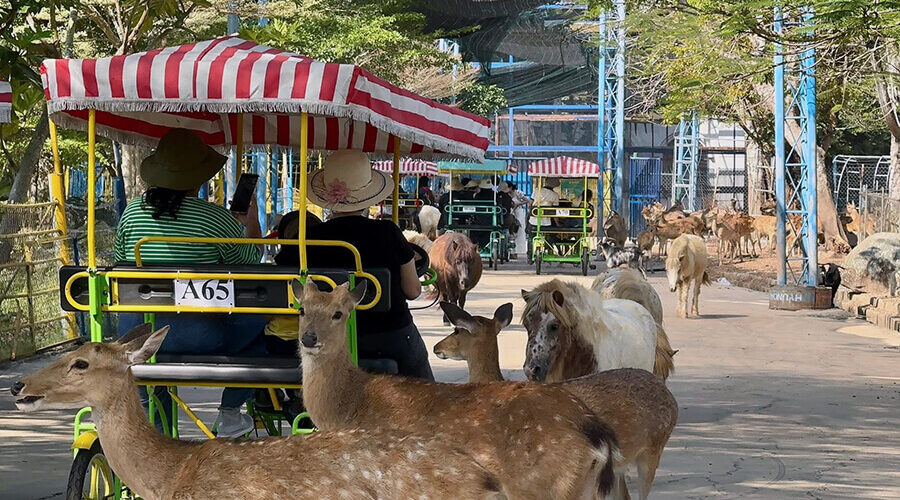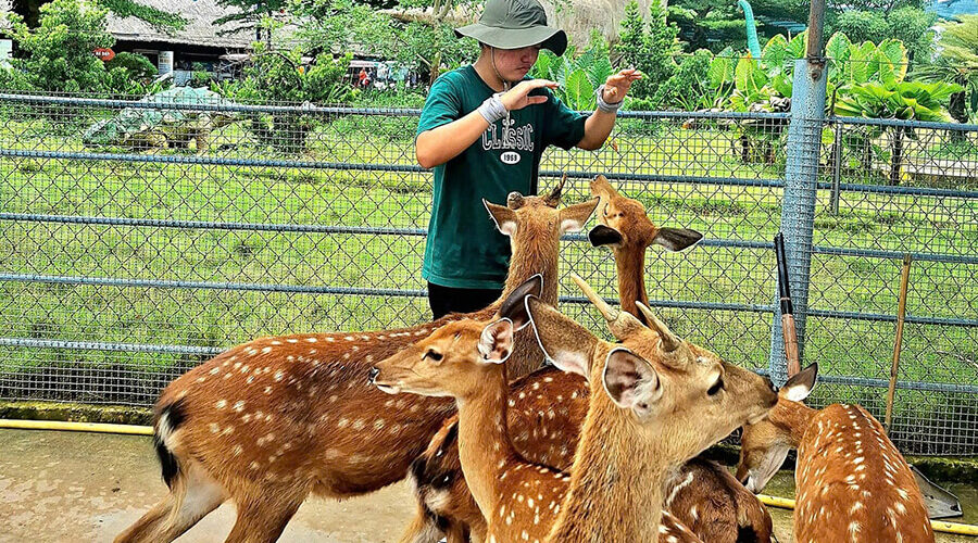 However, at My Quynh Safari, you will not interact with animals in cages or enclosures; they are free-roaming throughout the zoo. For visitors seeking a close look at the animals, a bus tour is available. For more friendly animals, visitors can interact directly, such as by petting or feeding (depending on the species).