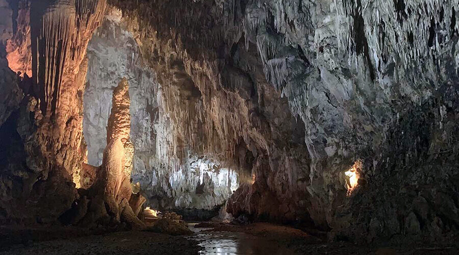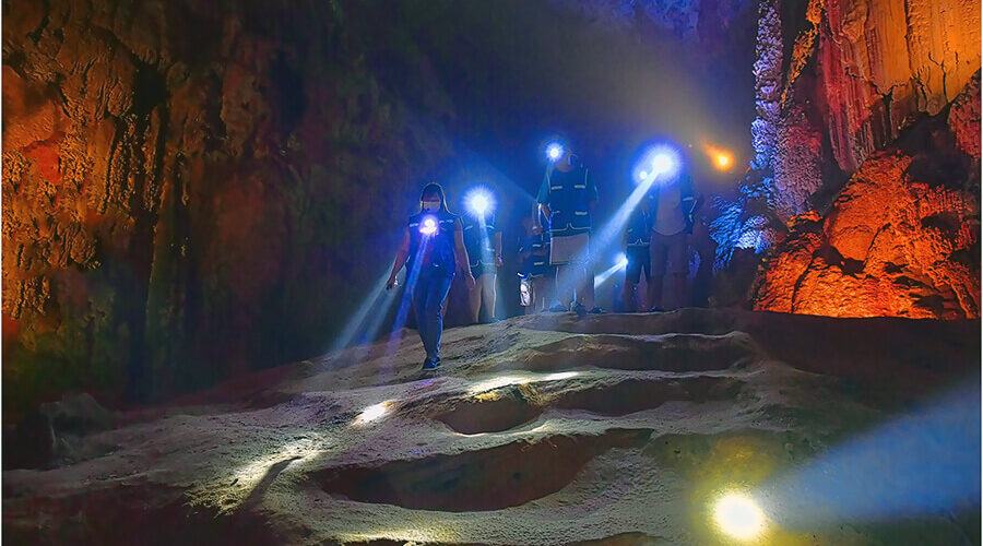 In particular, the stalactites in the cave have a different color from other local caves because of the amount of calcium mixed with many impurities, reflecting shimmering, magical light.