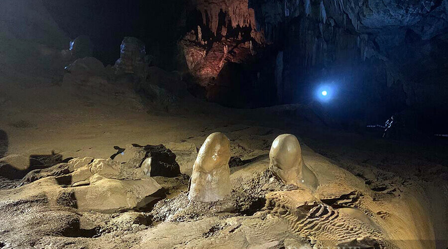 The part of the cave surveyed by the British Royal Cave Association in 1995 is 2,144m long with 3 main entrances: Nguom Ngao, Nguom Lom and Ban Thuon. According to scientists, this cave is a limestone cave containing many fossils of corals and sea lilies, formed in an ancient sea about 400 million years ago. In the summer, the temperature in the cave makes visitors feel cool, in the winter it is very warm.
