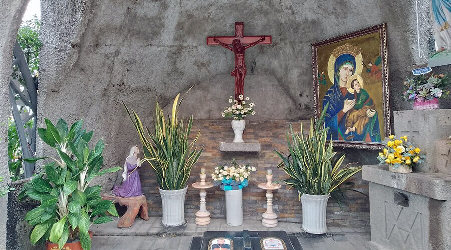 The ceiling is designed as a pointed vault, supported by a system of exquisitely sculpted columns. The sanctuary is decorated with five large stained-glass paintings depicting stories from the Bible. Opposite the sanctuary is the choir loft, where the statue of Christ is placed, along with a circular stained-glass window shaped like a flower.