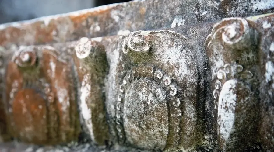 Notably, around the sutra pillars and incense bowls are 12 lotus petal stone pedestals with similar shapes and sizes.