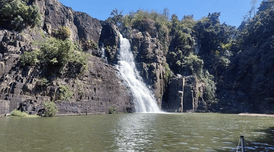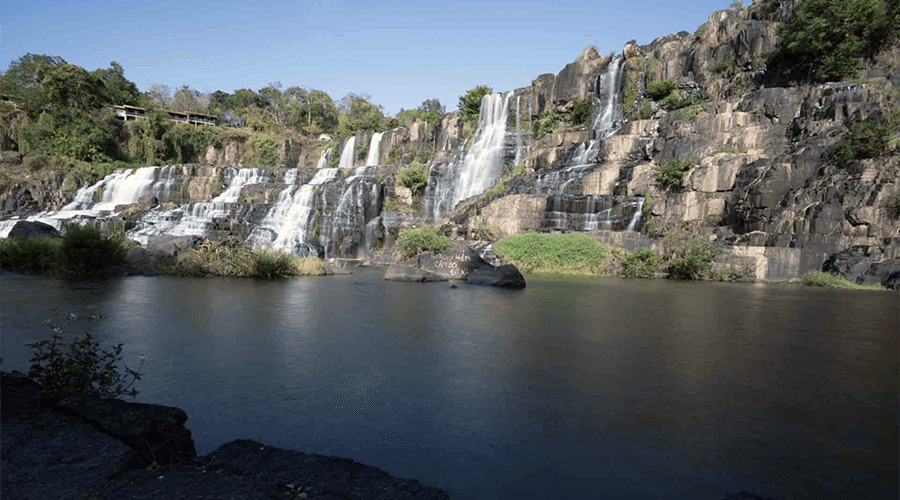Pongour Waterfall is beautiful and full of water throughout the year. During the rainy season (from July to September), the waterfall flows strongly into the lake, creating a magnificent scene with its white foam.