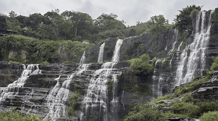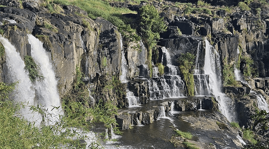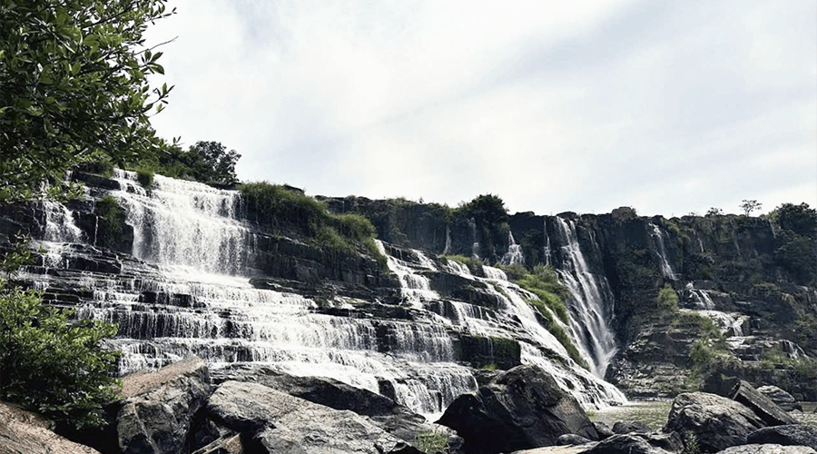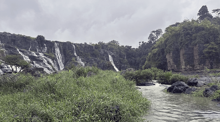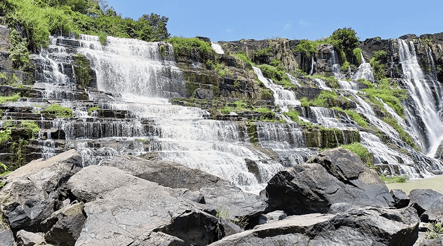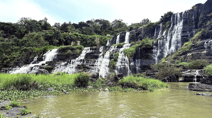 Pongour Waterfall is a famous, beautiful waterfall considered one of the most majestic in the Central Highlands, cascading nearly 40 meters and spanning more than 100 meters across a multi-tiered rock staircase. Surrounding the waterfall is a pristine forest with diverse and abundant vegetation.