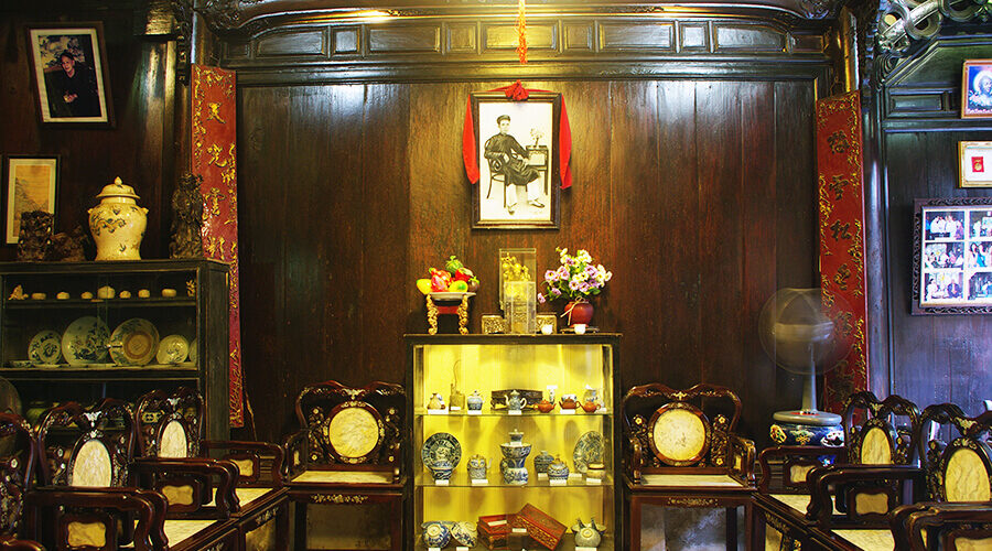 The house was built by Mr. Le Cong – a businessman of Chinese origin, got rich by trading agricultural products at that time. During his son’s generation, the house was named Tan Ky – meaning prosperity in business. In front of the house is Nguyen Thai Hoc street, bustling with trade, meanwhile behind the house is the gentle Thu Bon river to facilitate importing goods.