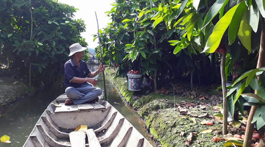 Fruit orchards: with the advantages of nature, fertile soil, Tan Loc is the land of immense orchards. Some of the attractions not to be missed such as Ms. Lê Hồng Điệp guava garden about 4,000 square meters wide which grow only psidium guajava. She has been using clean technology, without chemicals, to grow psidium guajava so you can just pick it and enjoy on the spot. Not too far from Ms. Điệp’s garden, Mr. Đỗ Trung Ngôn’s garden also served tourism. With an area of 3 ha. Mr. Ngôn’s garden has burmese grape, oranges, rambutans…, especially there are very large fish ponds served for fishing or rowing boat along the gardens.