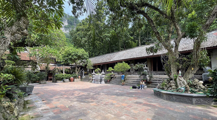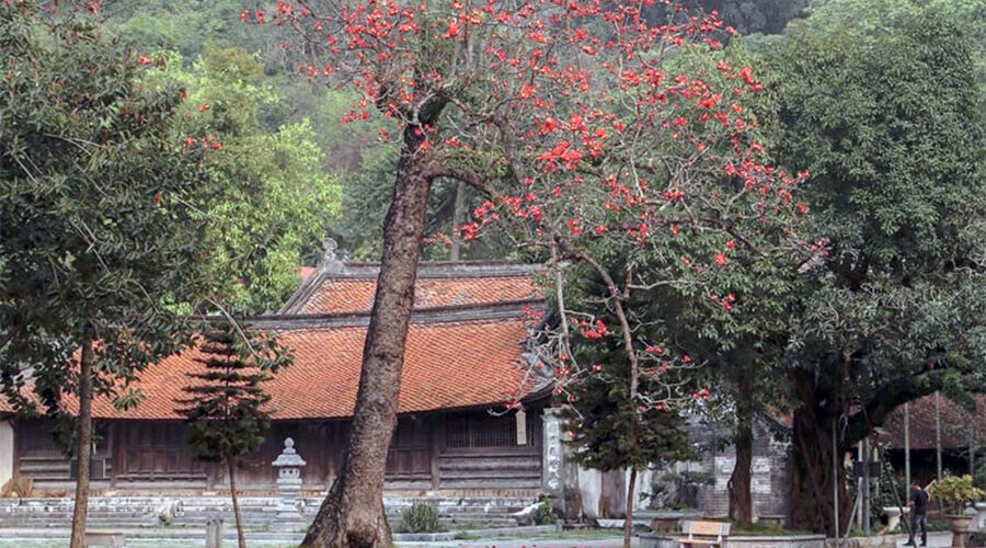 Going along the road up the mountain, there is the architectural complex of Cao temple, which was Hien Thuy Shrine – the first place of Zen Master Tu Dao Hanh’s practice. The higher you go up the mountain, the more small caves you will encounter such as But Moc Cave, Bo Cave, Gio Cave, and the One-Roof temple (Boi Am temple). There is also a limestone grotto known as the hang Cac Co, “the Mischievous”. Mot Mai (One-Roof) temple is an extremely unique architectural work because the temple is located against a high, rugged cliff and has only one roof.