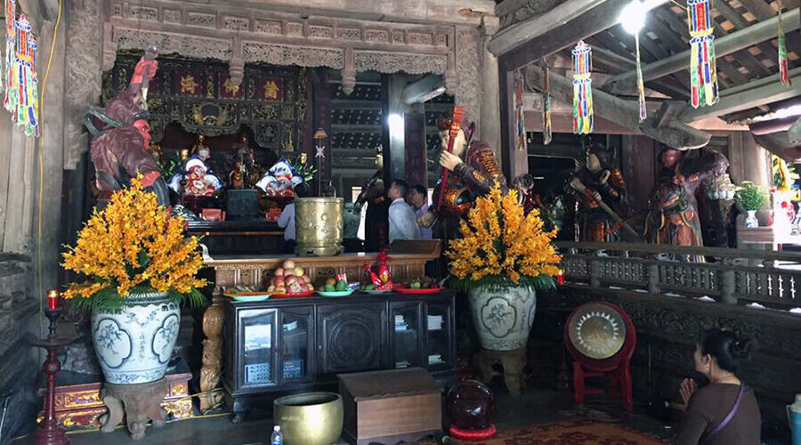 Thuong, is located at the highest position, completely separate from Ha and Trung area. On this chamber, the statues of Amitabha, Sakyamuni, and the three-life statues of Zen Master Tu Dao Hanh are placed.