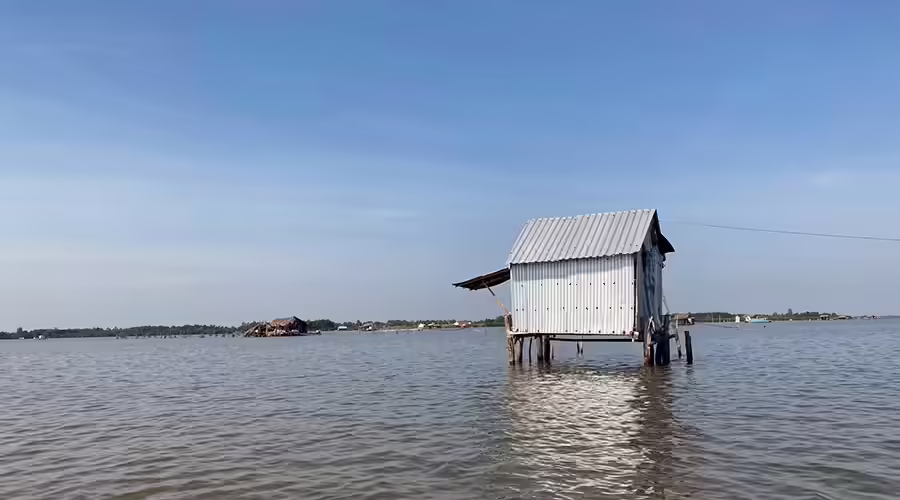 The unique highlight of Thi Tuong Lagoon is the simple huts built by the people on the water surface for farming and living. These “lonely houses” create a picture that is both realistic about life and romantic, evoking a feeling of separation from the hustle and bustle of the city.
