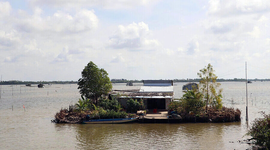 On the lagoon, there are many rows of large and small stilt houses scattered, each house is about 100 m apart, that distance is the boundary of each household working in the seafood exploitation here. Each hamlet is like a “small village” lying exposed on the vast water surface.