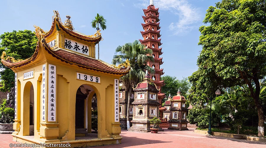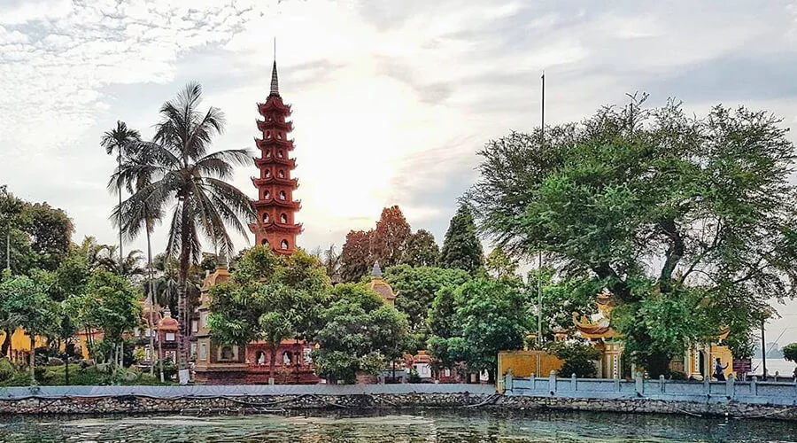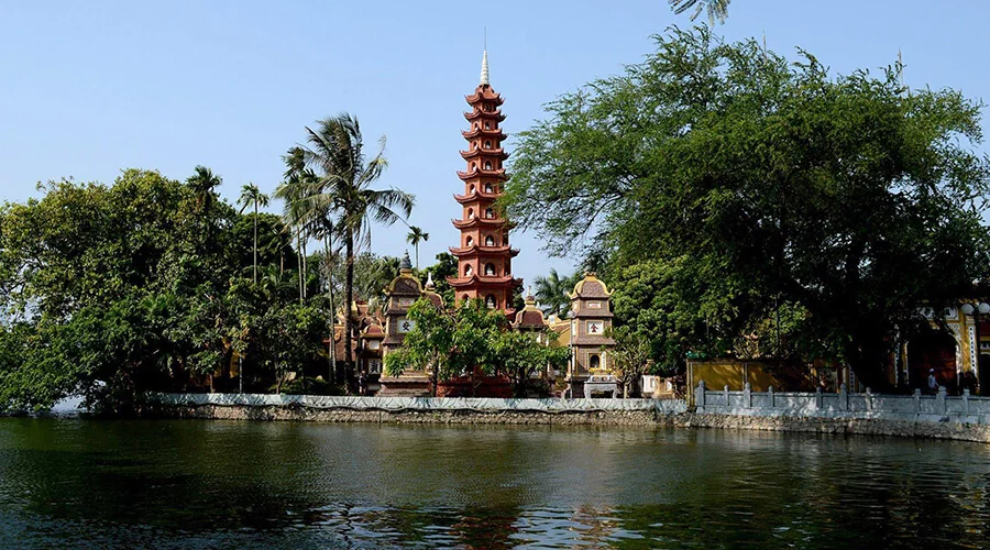 - Tran Quoc Pagoda located on an east side isle of the West Lake (Tay Ho district), It is considered as the most ancient pagoda in Thang Long – Ha Noi with its historical progression in 1500 years. It has a harmonious combination between the majesty, hoariness architecture and peaceful landscape of the West Lake. From the period in the Ly and Tran dynasties, it had become the Buddhist center of Thang Long.