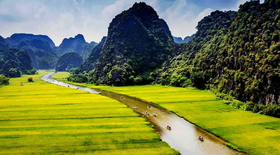 8:00 – 8:30 Our guide & driver will pick you up at your hotel in Ha Noi Old Quarter, then leave by coach to Hoa Lu (2.5 hrs). Visit the historic capital of Viet Nam and the famous ancient temples of Le and The Dinh Dynasties. Then our bus will transfer you from Hoa Lu to Tam Coc for lunch around 12:30PM.