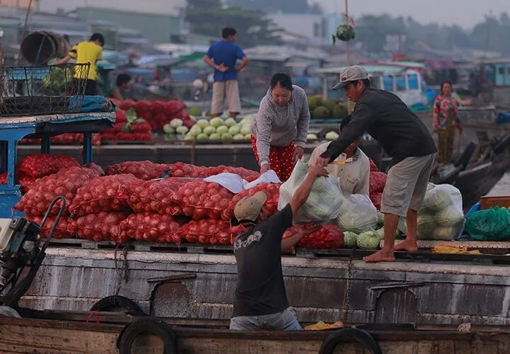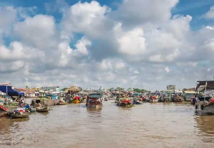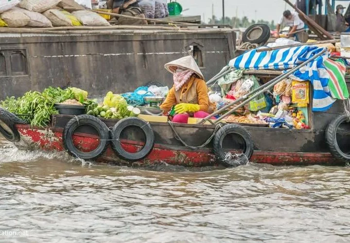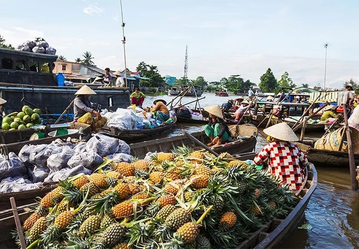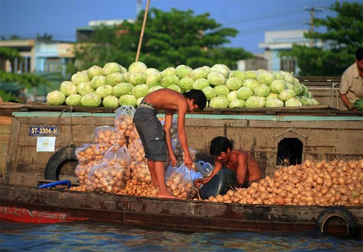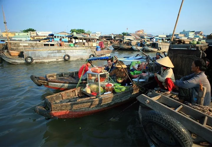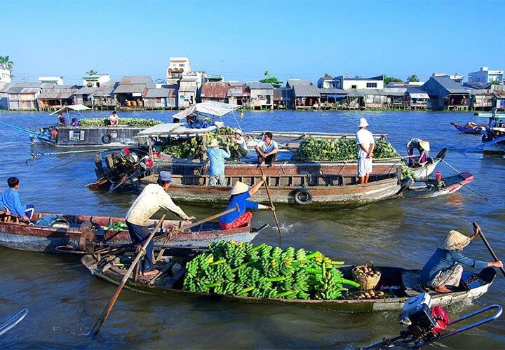 Have an early breakfast at the hotel/homestay, then being at a wharf to board a motorboat for sightseeing the Cai Rang Floating Market which is the biggest and most colorful floating market in the Mekong Delta’s region where hundreds of boats, ships packed with fruits, vegetables, plants, and foods…line along the river and are ready for trading. After the Cai Rang market, continuing cruising through small creeks to a local orchard and enjoying tropical seasonal fruits.