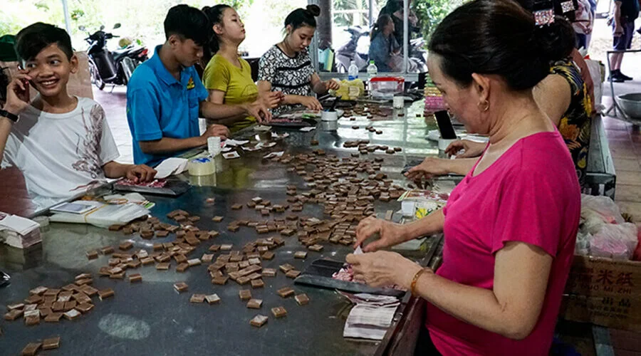Cai Be in Tien Giang Province is a charming small town in the south sitting picturesquely alongside the mighty Mekong River. If it’s your first trip to Cai Be, you should definitely take the almost mandatory tour of the small channels and coconut candy factory, or you can make your day loose and easy with a leisurely bike ride along the small residential roads. Brief: – Take a boat touring along the Mekong river – Visit craft villages, fruit orchards and enjoy a live local music performance. – Attend a cooking class with local chef – Go kayaking, bicycling Highlights: Cai Be offers many exciting attractions, activities, and excursions. Nature lovers will enjoy the lush natural landscape and those interested in local culture will love meeting the very hospitable local people and discovering the way of the life in this region. 7:30AM. We depart for Cai Be, during 2-hour car ride, you will pass through the picturesque rice fields and enjoy the peaceful scenery. Arrive Cai Be, take a boat trip to cruise along the Mekong river. Disembark to visit the craft village where you can witness how the local products are made. Continue cruising on the boat. Get off at the fruit orchards comprising many kinds of fruits such as: jack-fruit, durian, guava, rambutan, longan etc… drink hot tea, eat fresh fruits and enjoy a live local music performance. Head to the local restaurant by boat, attend a cooking class with local chef, then enjoy your lunch. After lunch, take a rest, then go kayaking. Don’t worry if you are a first-time paddler, it is not difficult. This is a unique experience in the Mekong Delta. Biking along the countryside road to get to know the locals going about their day. Say goodbye and depart for Ho Chi Minh city. 18:00PM. Arrive Ho Chi Minh city, where the tour to Cai Be ends! Includes: Exclusions: Children Policy: • Children will be counted from age 4 – 11 years old. • Children under 4 years old: Free of charge for 1st child. • A maximum of 2 children accompanied by 2 adults. Cancellation policy for full charged Tours: