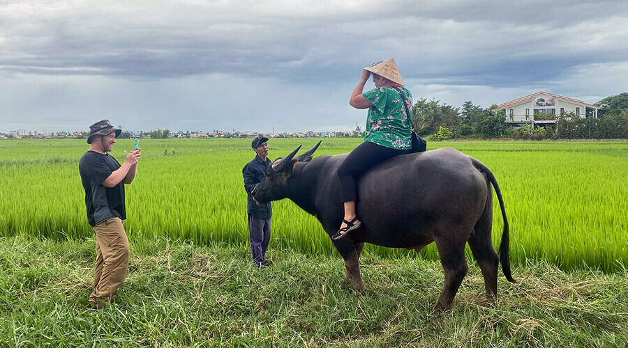 Imagine the feeling of relaxation and peace when cycling around peaceful village roads, surrounded by cool green vegetable fields and a fresh, refreshing atmosphere that will help you relax and feel the wonderfulness of Tra Que.