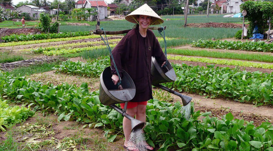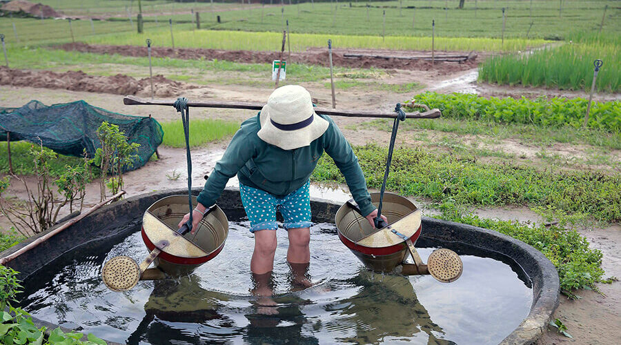 Note that you should come early in the morning or in the afternoon, as the cool weather also the time when local people come out to take care of the vegetable garden, you can chat and try to experience the work of friendly farmers.
