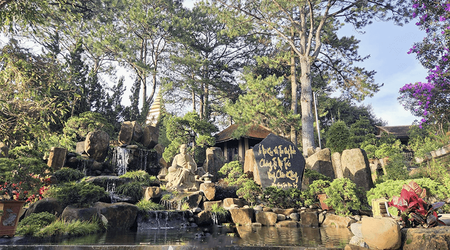 Another interesting feature is that Truc Lam Zen Monastery is also ready to welcome guests who wish to stay for a few days to meditate and rediscover themselves after the stresses of city life. They will be accommodated at a guesthouse halfway up the hill, living and eating like monks and nuns in a temple. With its beautiful location and peaceful atmosphere, Truc Lam Zen Monastery in Da Lat is always on Da Lat’s list of most popular tourist attractions.