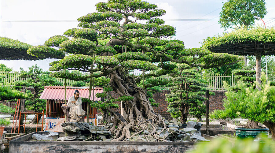 To create a beautiful ornamental, the artisan must spend several years to take care of a simple tree; it takes more than ten years for a tree with a complex shape and position. With meticulousness and perseverance in shaping, it takes many years for a bonsai to create a beautiful shape. Then, the artisans skillfully shaped the molds into shapes of birds, animals, One Pillar Pagoda, Khue Van Cac, Pho Minh Tower……